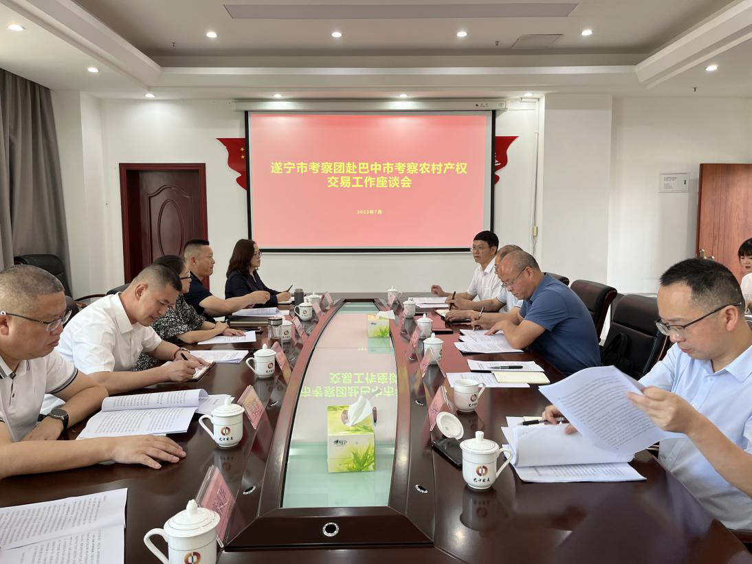 7月4日,由遂寧市政府副秘書長劉旭帶隊(duì),遂寧市農(nóng)業(yè)農(nóng)村局副局長劉罡霏、遂寧市財(cái)政局副局長何國強(qiáng)、遂寧興業(yè)集團(tuán)黨委書記、董事長向誠、遂寧數(shù)字產(chǎn)業(yè)集團(tuán)黨委書記、董事長唐清華、遂寧市金融工作局資本市場科科長黎陳等一行人員蒞臨巴中發(fā)展控股集團(tuán)有限公司考察農(nóng)村產(chǎn)權(quán)交易工作并召開座談會,巴中市政府副秘書長何潔明主持會議,巴中市農(nóng)業(yè)農(nóng)村局副局長馮金光、農(nóng)村改革科科長楊忠平、巴中發(fā)展控股集團(tuán)黨委委員、副總經(jīng)理劉仕勇、成都農(nóng)交所巴中分公司總經(jīng)理、巴中市鑫匯農(nóng)業(yè)服務(wù)有限公司執(zhí)行董事羅曉東參加會議。