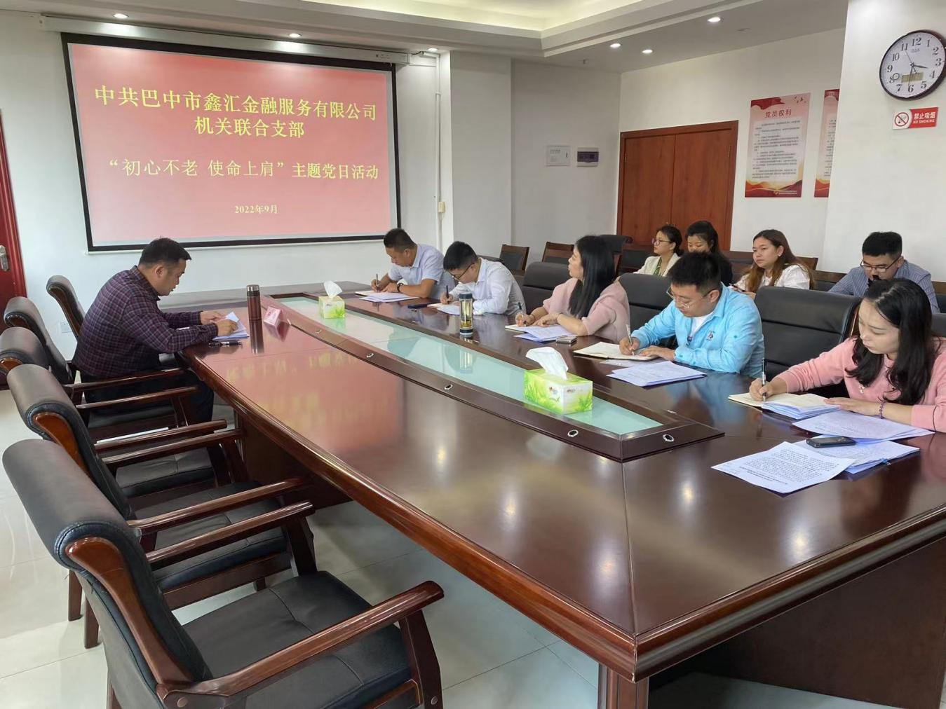 為進(jìn)一步加強(qiáng)基層黨組織建設(shè),切實(shí)發(fā)揮黨員干部的先鋒模范作用,9月28日,中共巴中市鑫匯金融服務(wù)有限公司機(jī)關(guān)聯(lián)合支部開(kāi)展“初心不老 使命上肩”主題活動(dòng),機(jī)關(guān)聯(lián)合支部全體黨員、公司全體職工參加。